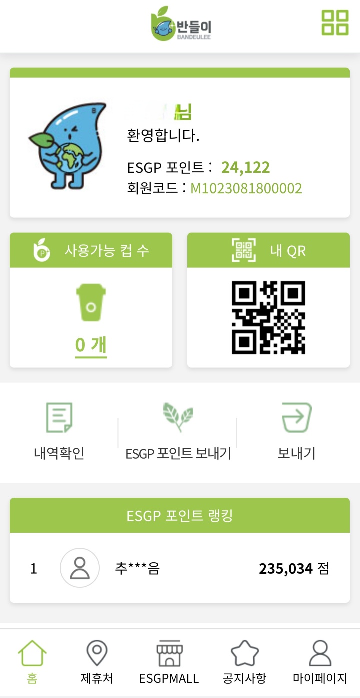 - 방법: 반들이와 제휴된 카페에서 음료를 주문하며 텀블러를 사용하세요. 결제 시, 반들이 앱을 켜서 매장에 비치된 QR코드를 스캔하거나 직원의 안내에 따라 간단한 인증만 거치면 끝! 자동으로 300포인트가 쌓입니다.